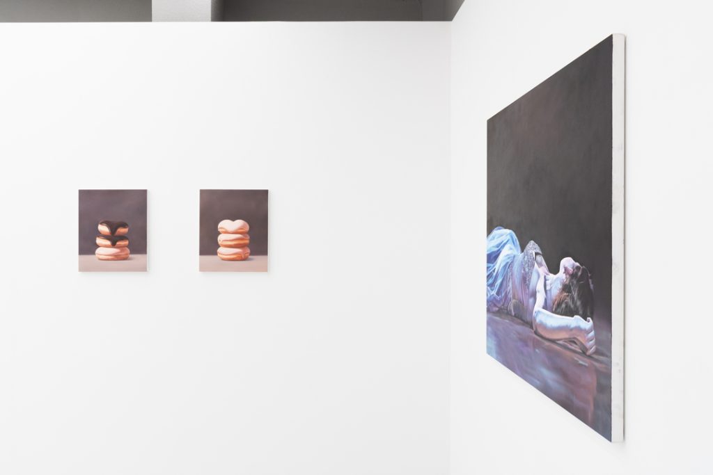 이번 전시에서 선보이는 회화들은 아비 바르부르크의 므네모시네 아틀라스에서 출발해, 연대기적 흐름 속에 배열되기보다 과거와 현재가 겹쳐지는 느슨한 시간성 안에서 재구성된다. 이 이미지들은 개인적 기억과 집단적 시각 경험 사이를 오가며 병치되고, 그 과정에서 인물과 도넛은 재현의 대상이 아니라 이미지가 기억으로 작동하는 경로이자 감각을 호출하는 매개로 등장한다.