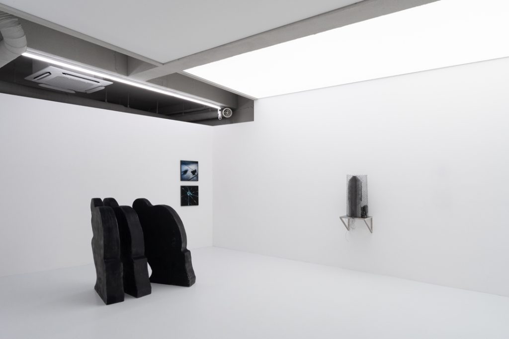 The works here paint a figure at once fragmented and whole— watchful and blind, mucous and reflective, violent and still, red, black. The glimpse of the will towards an ideal that was once lucidly expressed makes itself felt dimly through its severed reality. These are images that arise in the imaginations of those who experience the world in its incomplete form.